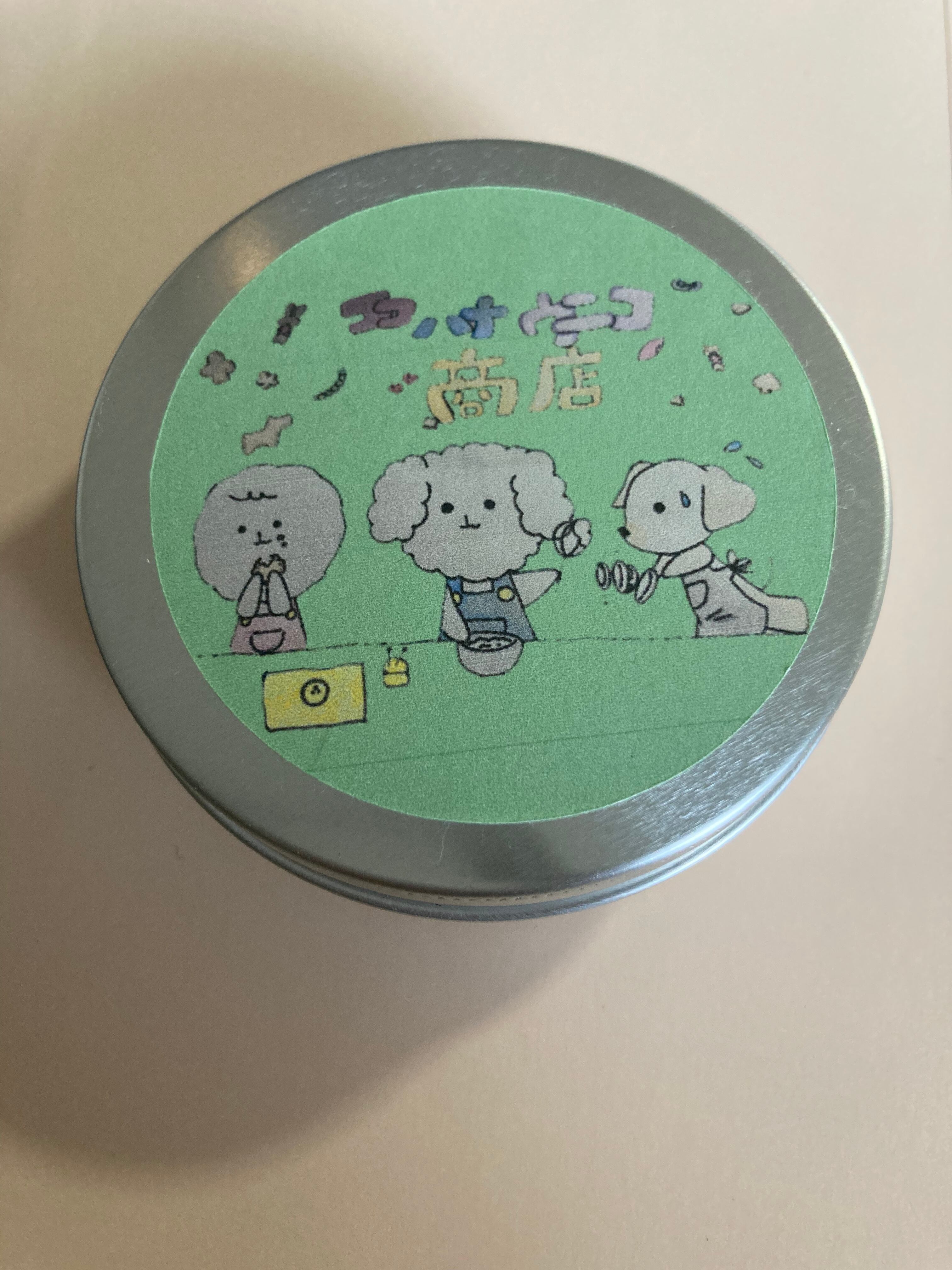 1缶にわんこ型、骨型、ハート型、スクエア型の4種類のクッキーが入っています。